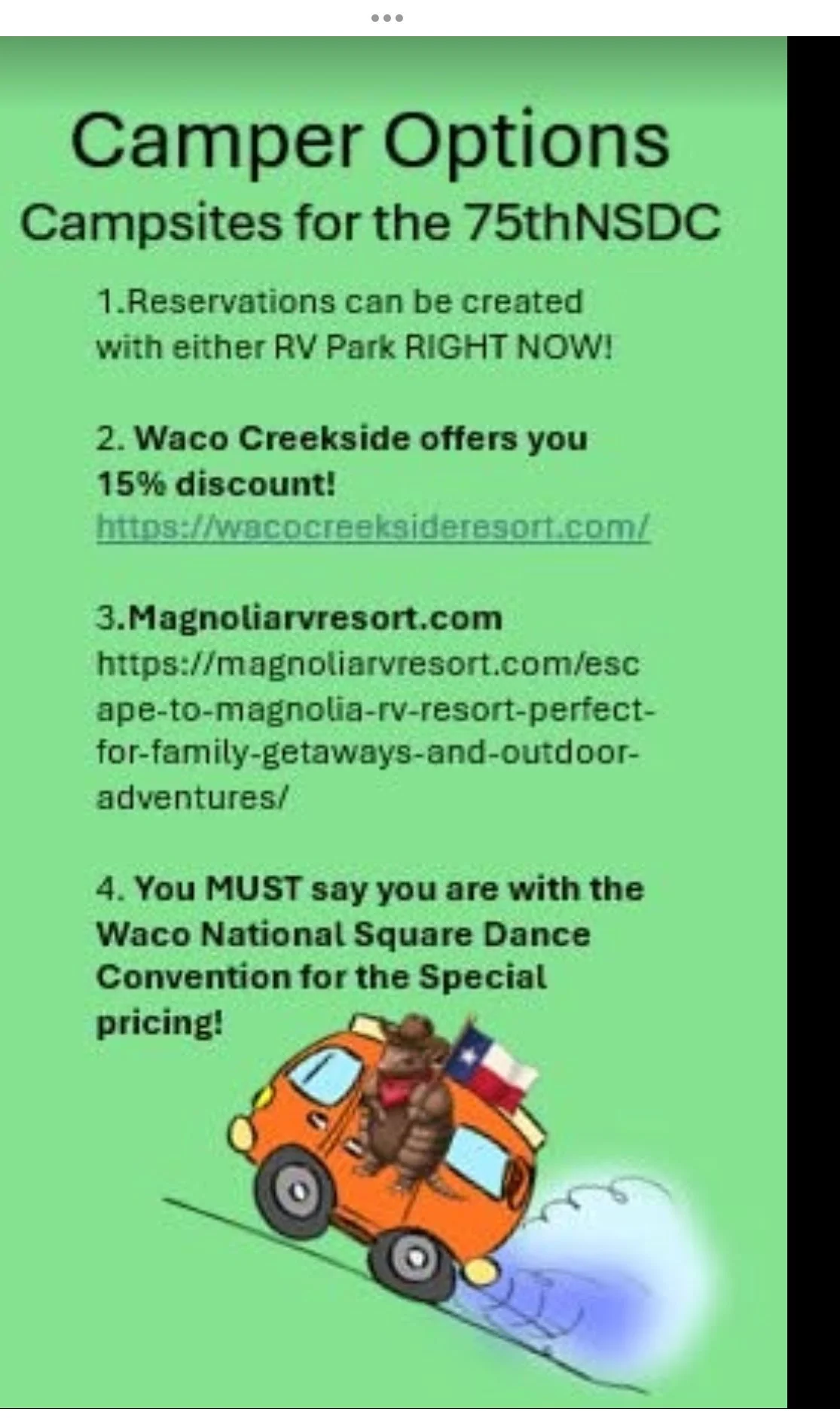 For More information, see the 75th National Square Dance Convention website https://75nsdctx.com/